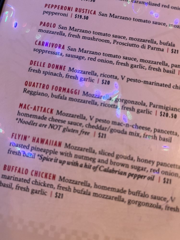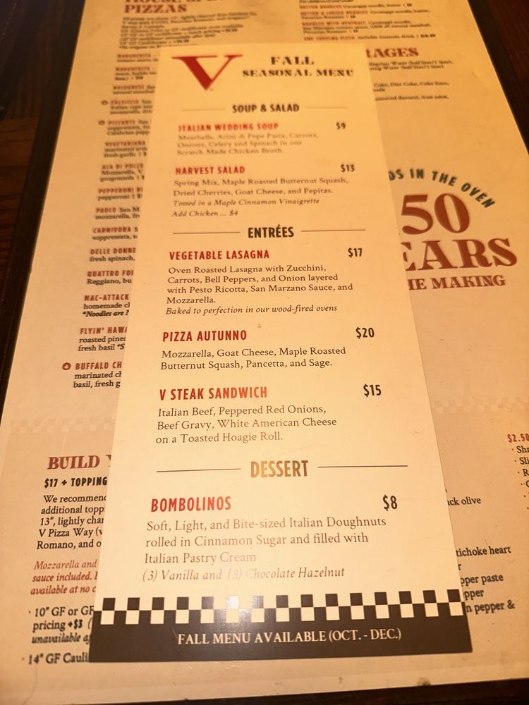 V Pizza - Palm Valley offers a diverse menu of personal-sized pizzas, wings, and calzones. Their Ala Di Pollo pizza features V marinated chicken, gorgonzola, and caramelized red onions on a wood-fired crust. The Buffalo Wings are marinated with V buffalo sauce and topped with gorgonzola crumbles, while the Calabrian Wings offer a zesty and spicy option. The BYO Personal Size Calzone allows for customization with mozzarella, ricotta, and one topping of choice. Customers rave about the tender and flavorful meatballs, with one mentioning the balanced sauce and blistered grape tomatoes. The atmosphere at V Pizza - Palm Valley is praised for its bourbon selection, ladder bar, and excellent service. Overall, a visit here promises a delightful dining experience with unique flavors and a welcoming ambiance.
